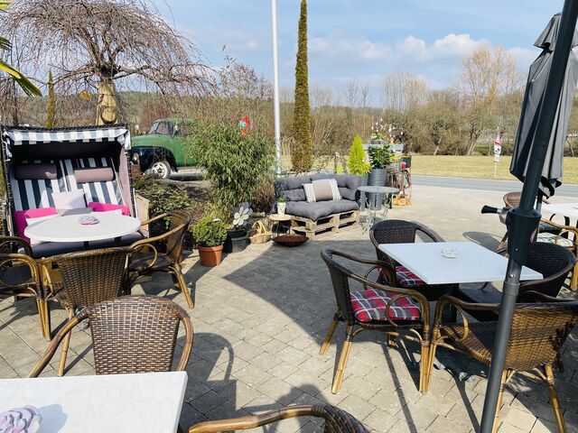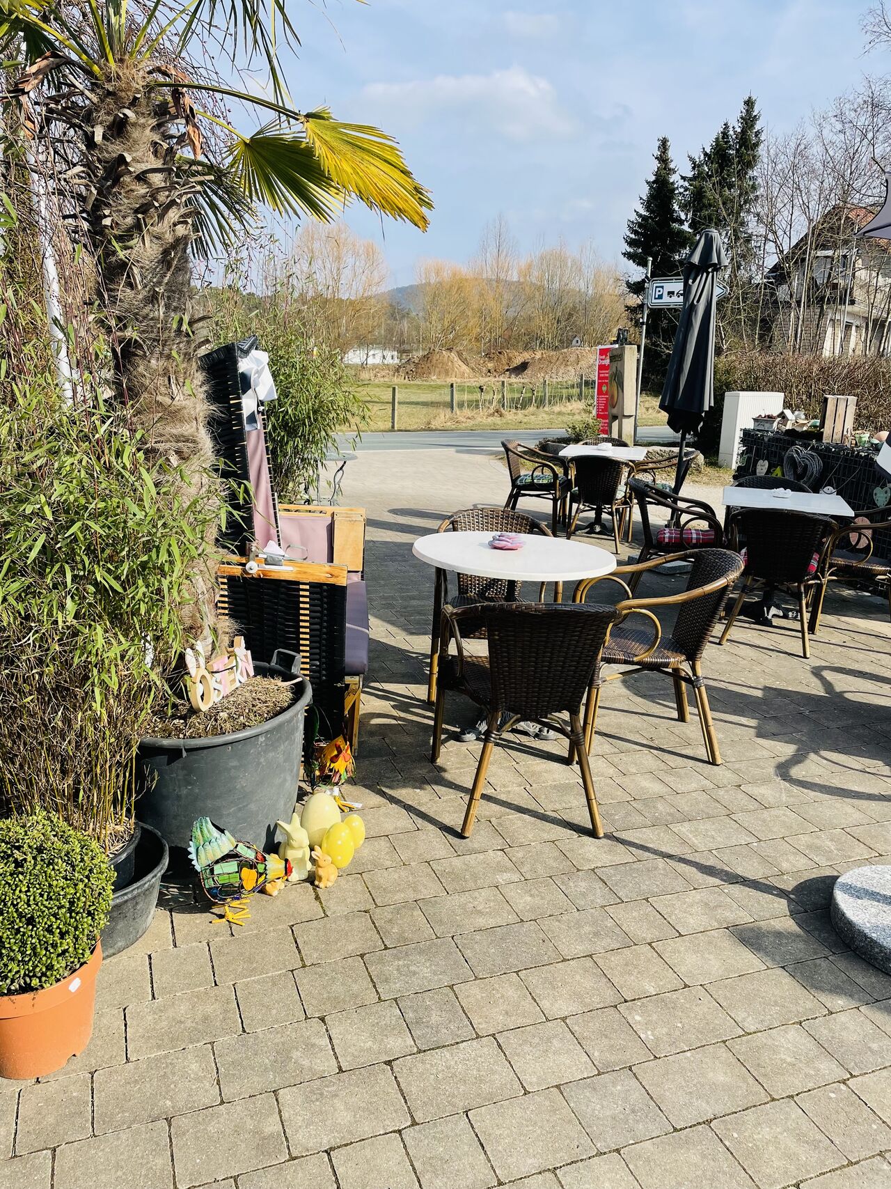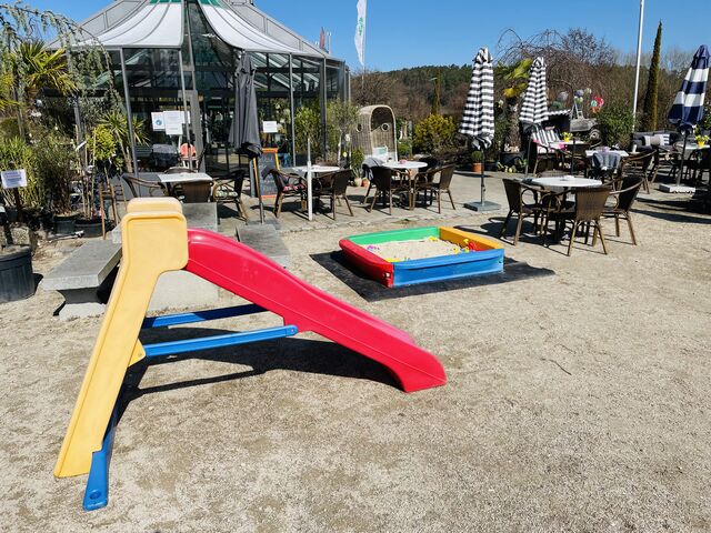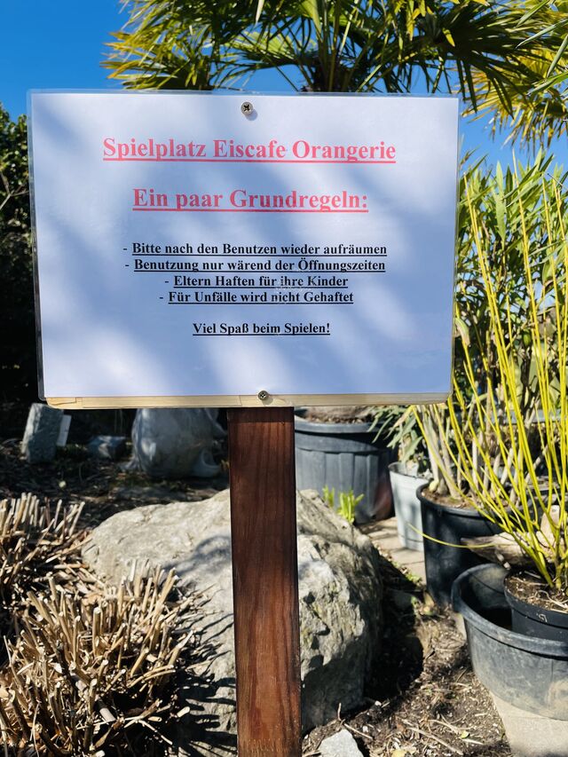 Unser schöner Außenbereich lädt zum gemütlichen verweilen mit einer Tasse Cafe oder Cappuccino und ein Stück Kuchen oder eben Eisbecher , eiscafé etc. ein. Zusätzlich haben wir seit neuen einen Sandkasten und eine Rutsche im Außenbereich für die Kinder. Im Innenbereich befindet sich ebenfalls eine kleine Kinderspielecke.🤗💥✨🤗🎉☺️